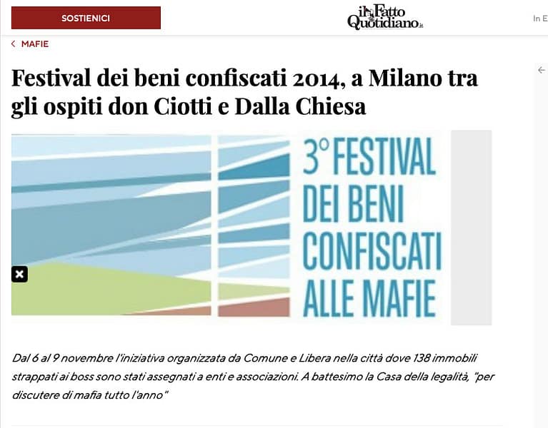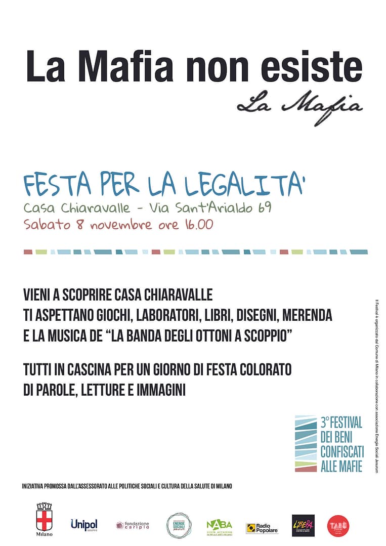 La terza edizione è stata possibile grazie al sostegno di Unipol e Fondazione Cariplo e grazie alla collaborazione delle tante associazioni attive sul territorio che hanno saputo riconvertire ad un uso sociale appartamenti, negozi e complessi immobiliari sottratti alla criminalità organizzata.