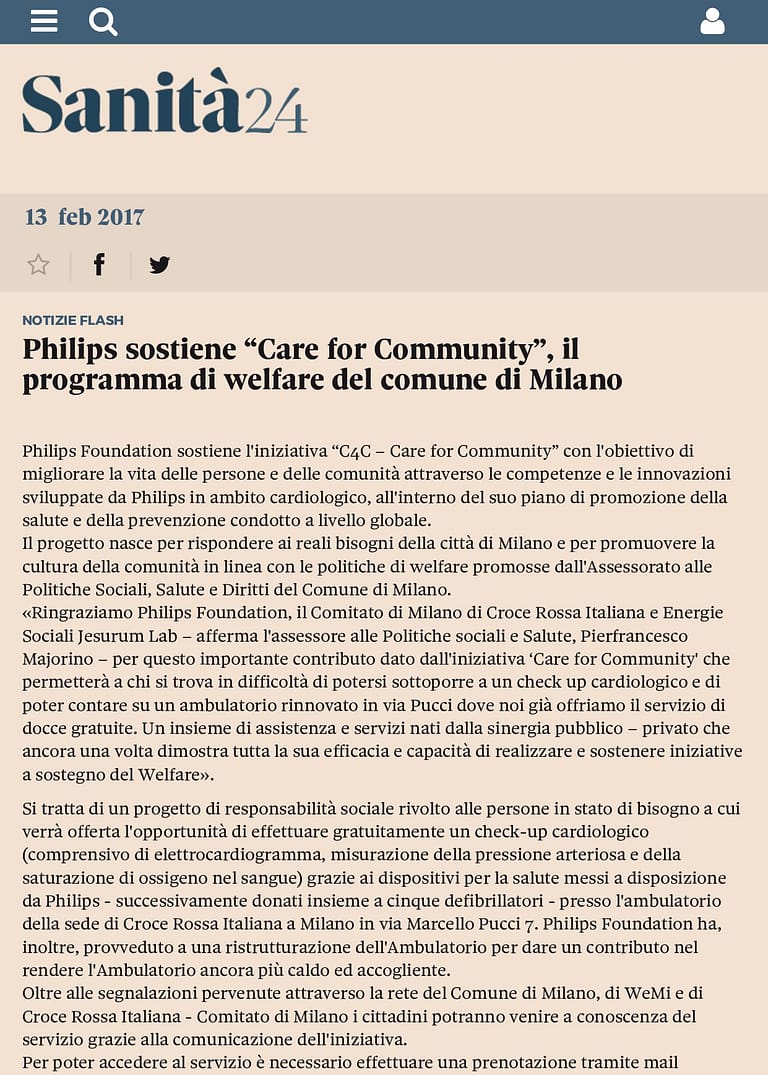 Philips Foundation ha sostenuto WeMi (wemi.milano.it), progetto realizzato dal Comune di Milano nell’ambito di “Welfare in azione” di Fondazione Cariplo.