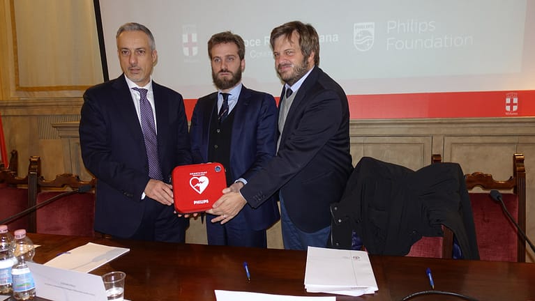 30 gennaio 2017, Conferenza Stampa a Palazzo Marino alla presenza dell’allora Assessore alle Politiche Sociali, Salute e Diritti del Comune di Milano Pierfrancesco Majorino, dell’ex Presidente e Amministratore Delegato Philips Italia, Israele e Grecia Stefano Folli e del Presidente della Croce Rossa Italiana – Comitato di Milano Luigi Maraghini Garrone.