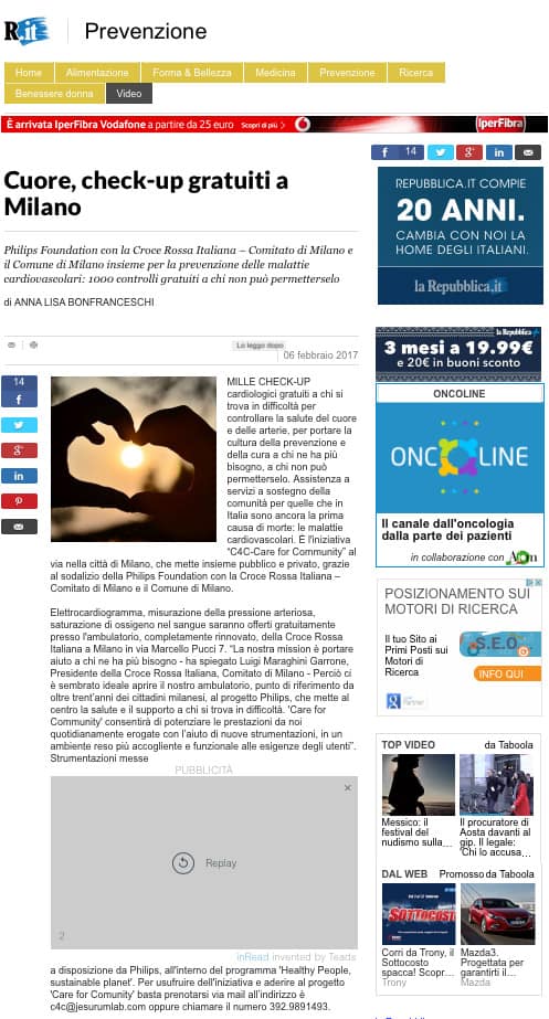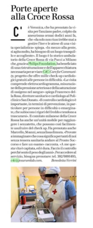 Presso l’Ambulatorio di Croce Rossa Italiana – Comitato di Milano, 1000 check-up cardiologici gratuiti per persone in difficoltà grazie alla collaborazione di Philips Foundation, Croce Rossa Italiana – Comitato di Milano e Comune di Milano.