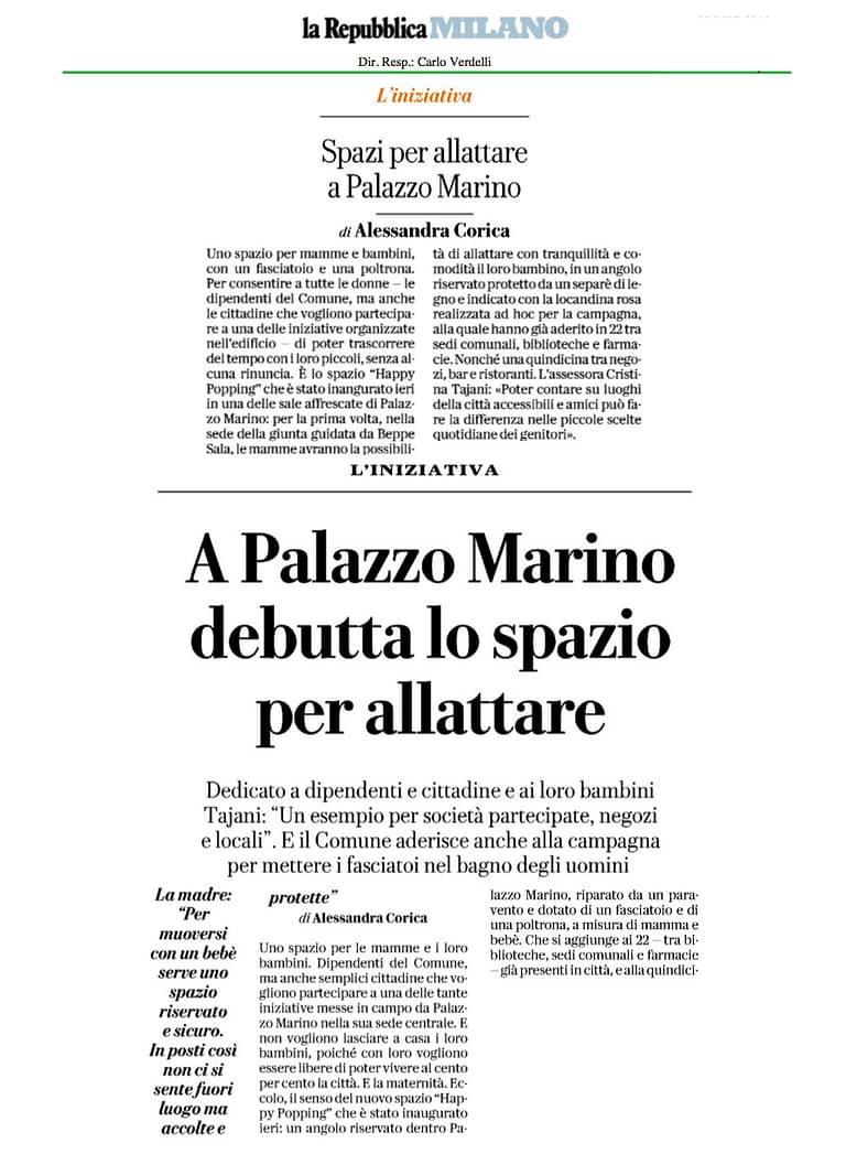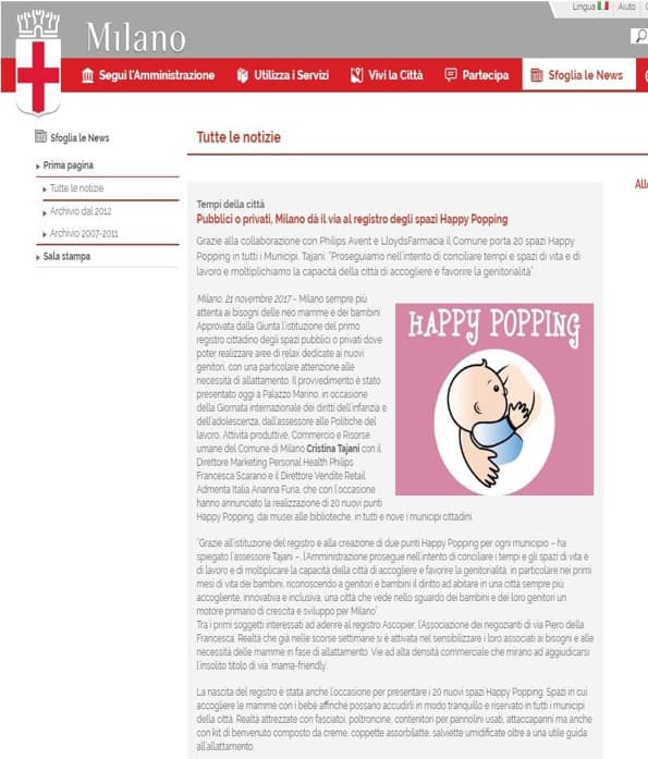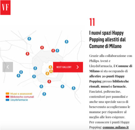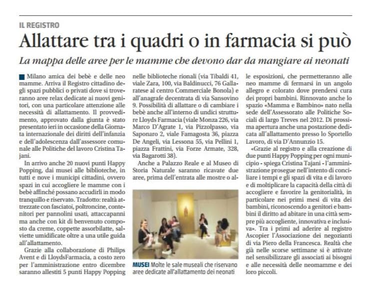 Creazione in tutti i 9 Municipi di Milano di punti Happy Popping per l’allattamento: biblioteche rionali, musei, farmacie, per una città sempre più attenta ai bisogni.