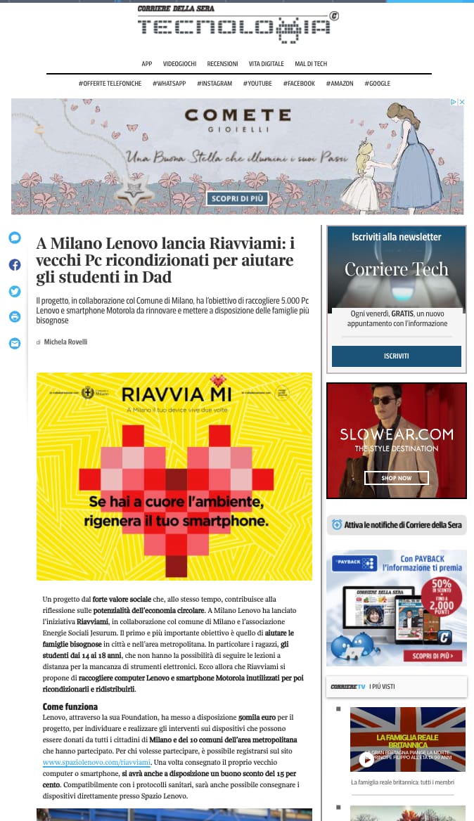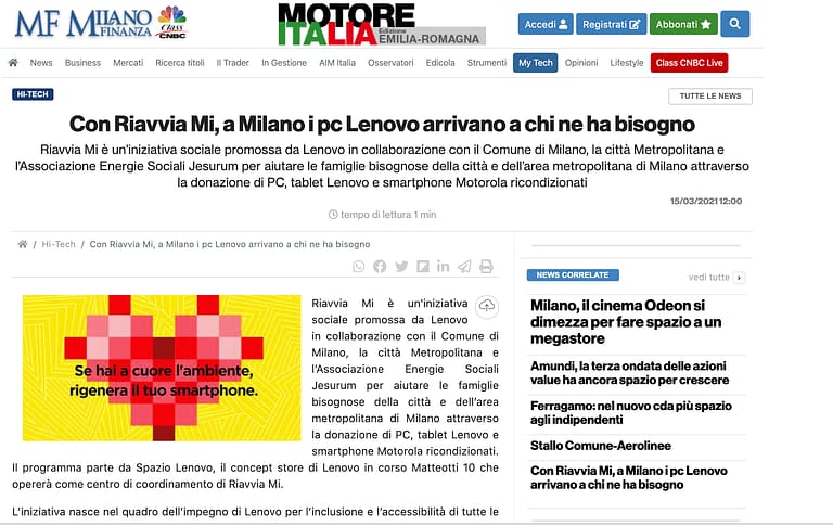 Un’iniziativa promossa da Lenovo Italia in sinergia con 12 Comuni, tra cui il Comune di Milano e diversi Comuni della Città Metropolitana di Milano. Istituzioni, Associazione e Lenovo insieme per rispondere al bisogno di dispositivi in supporto alla Didattica a Distanza.